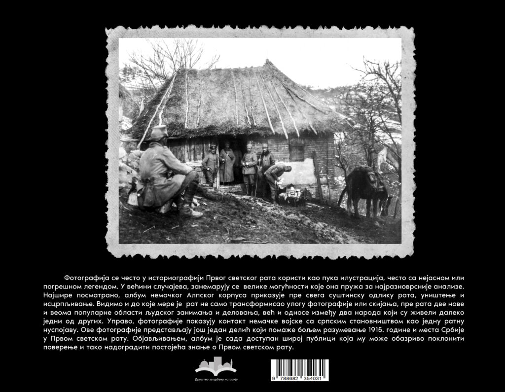 Nemački album sa 186 fotografija na izvrstan način pokazuje mogućnosti fotografija za beleženje istorije i njeno dalje prenošenje. Autor ovog albuma nažalost ostaje nepoznat. Ipak, kolega Imanuel Vog, specijalista za Alpski korpus, veruje da je snimke napravio neko od oficira iz telefonskog odeljenja Korpusa. Čini se da je autor pravio interni fotografski dnevnik o kretanju nemačke vojske. Njegov prikaz rata je ublažen i više putopisan nego ratnički. Bez obzira na to, ovaj fotograf je snimio mnogo toga važnog za dublje razumevanje 1915. godine i života u Srbiji.